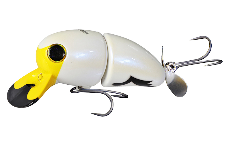 Jackall’s Hige Prima is a 66mm long 22g surface crawler/ wakebait. What this lure lacks in size it makes up for in features. Rigged with upturned double hooks the lure can be retrieved over surface snags without the fear of getting snagged. The over-sized bib and jointed body provide a seductive wiggle and coupled with a propeller on the tail agitate the water and produce a wake fish can hone in on, even in the dark. Available in a wide range of fun colours it is a perfect addition to any collection. These lures are already proving themselves on saratoga, bass and river cod out west.